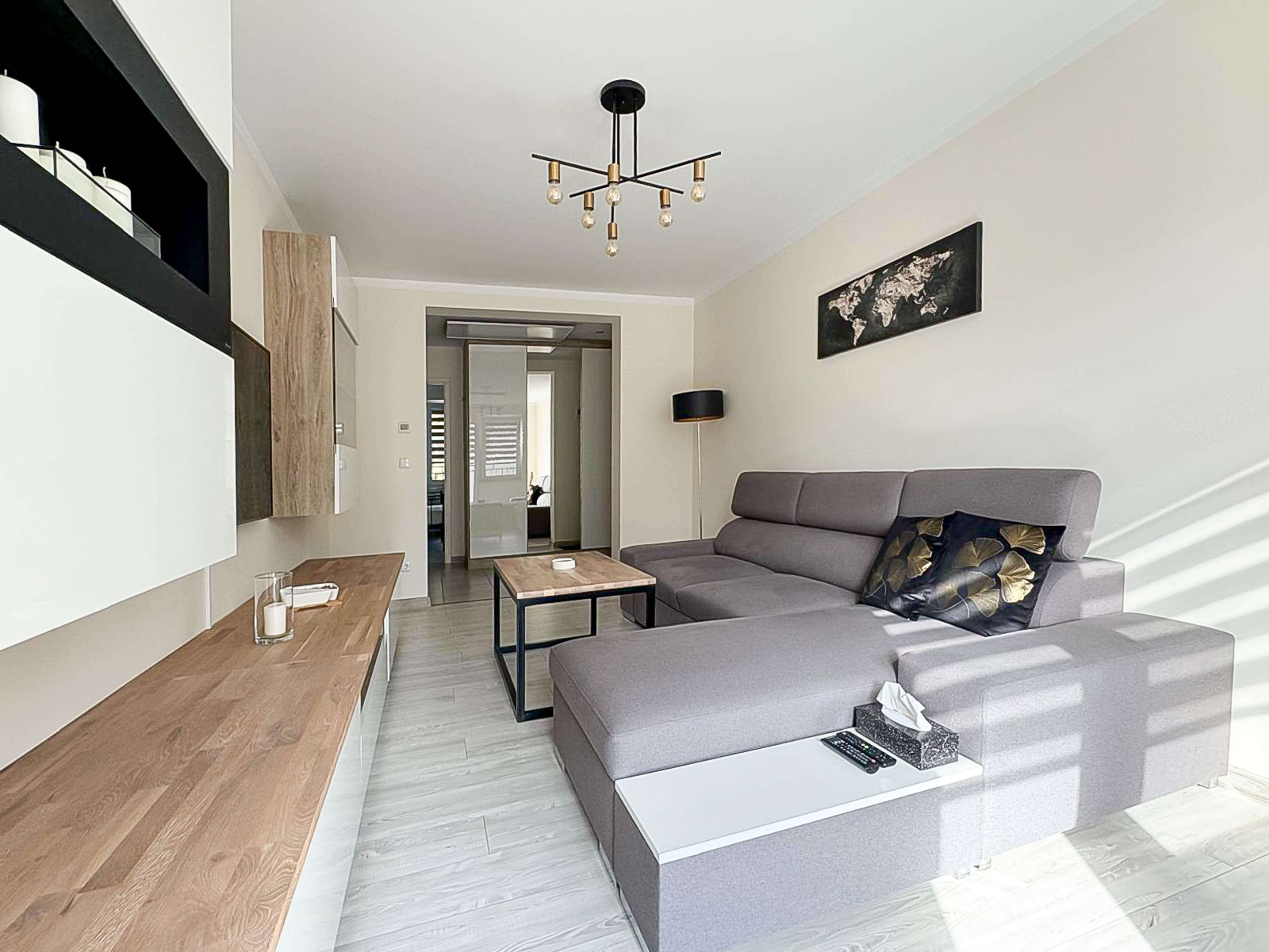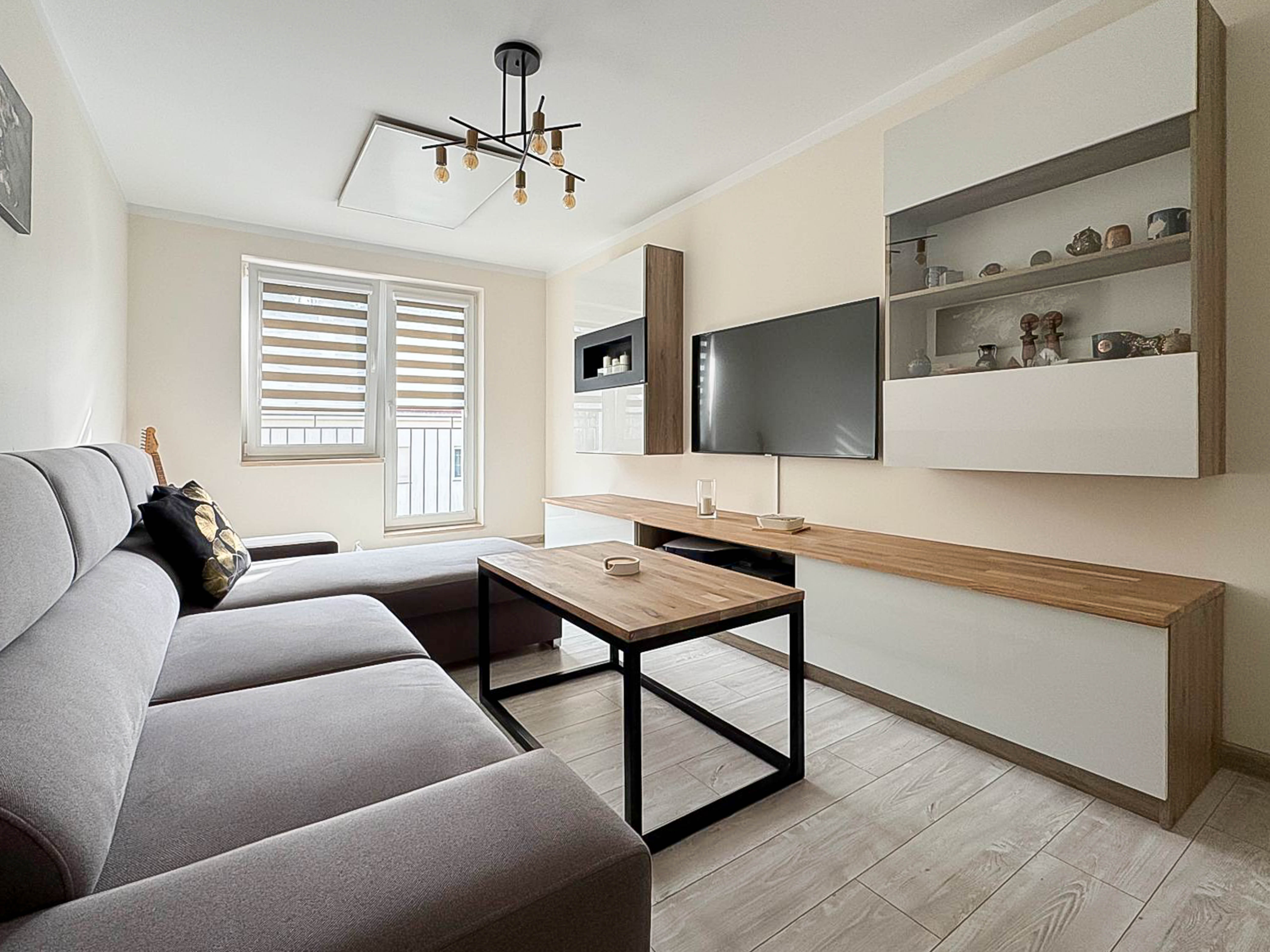 - jasny i przestronny salon z bio-kominkiem i wyjściem na balkon,