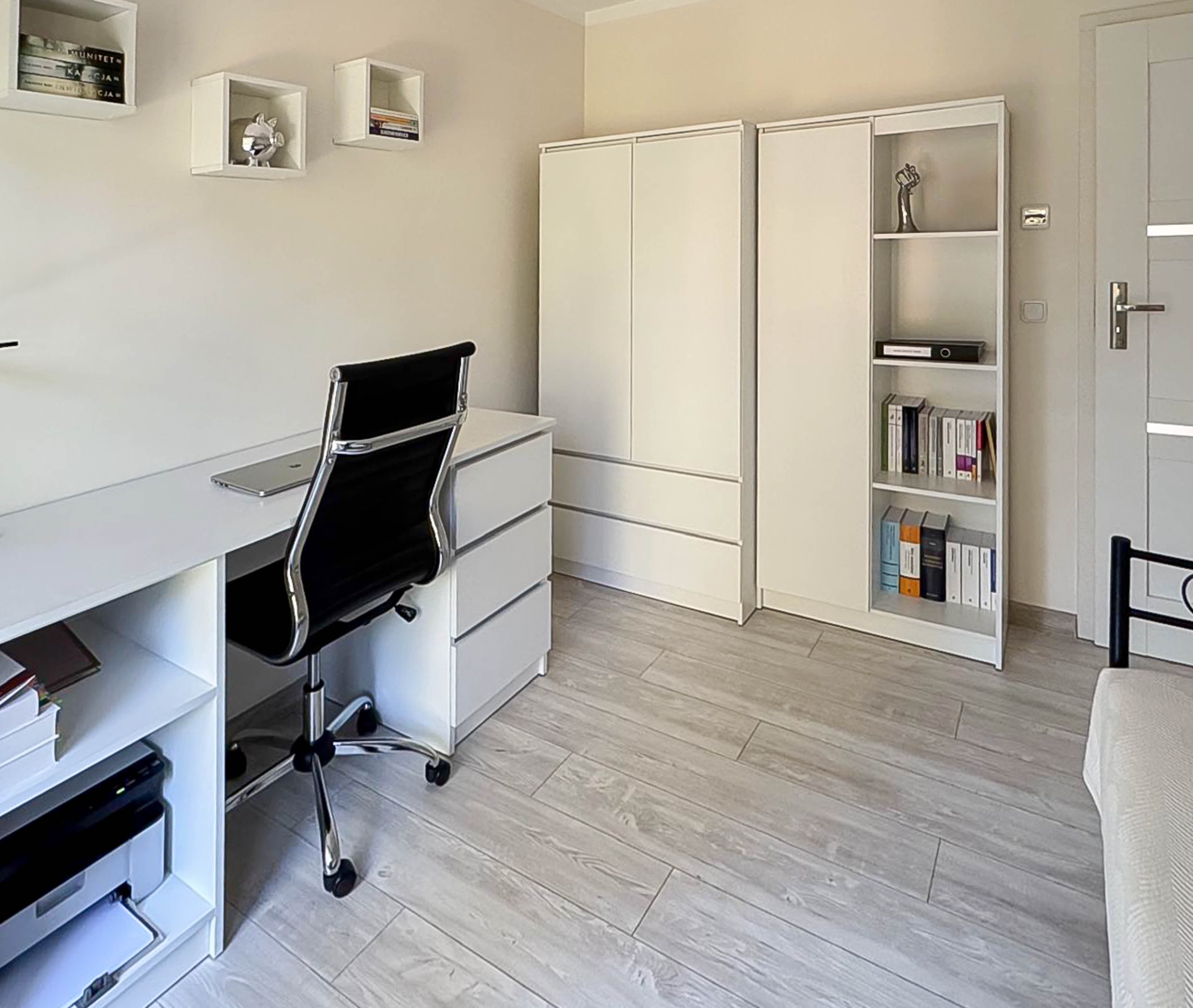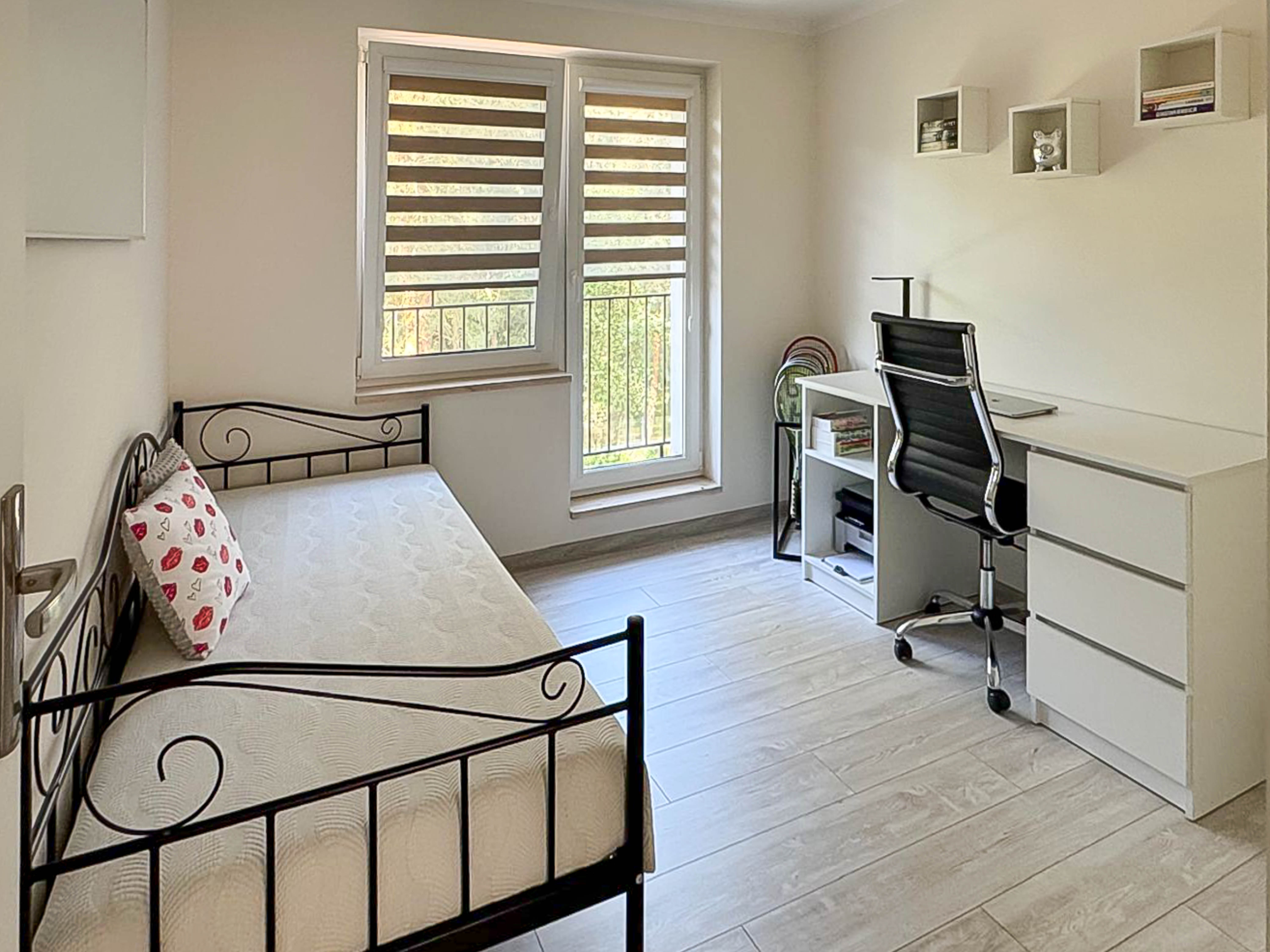 - pokój, w którym obecnie urządzone jest biuro- tutaj mamy również wyjście na balkon,
