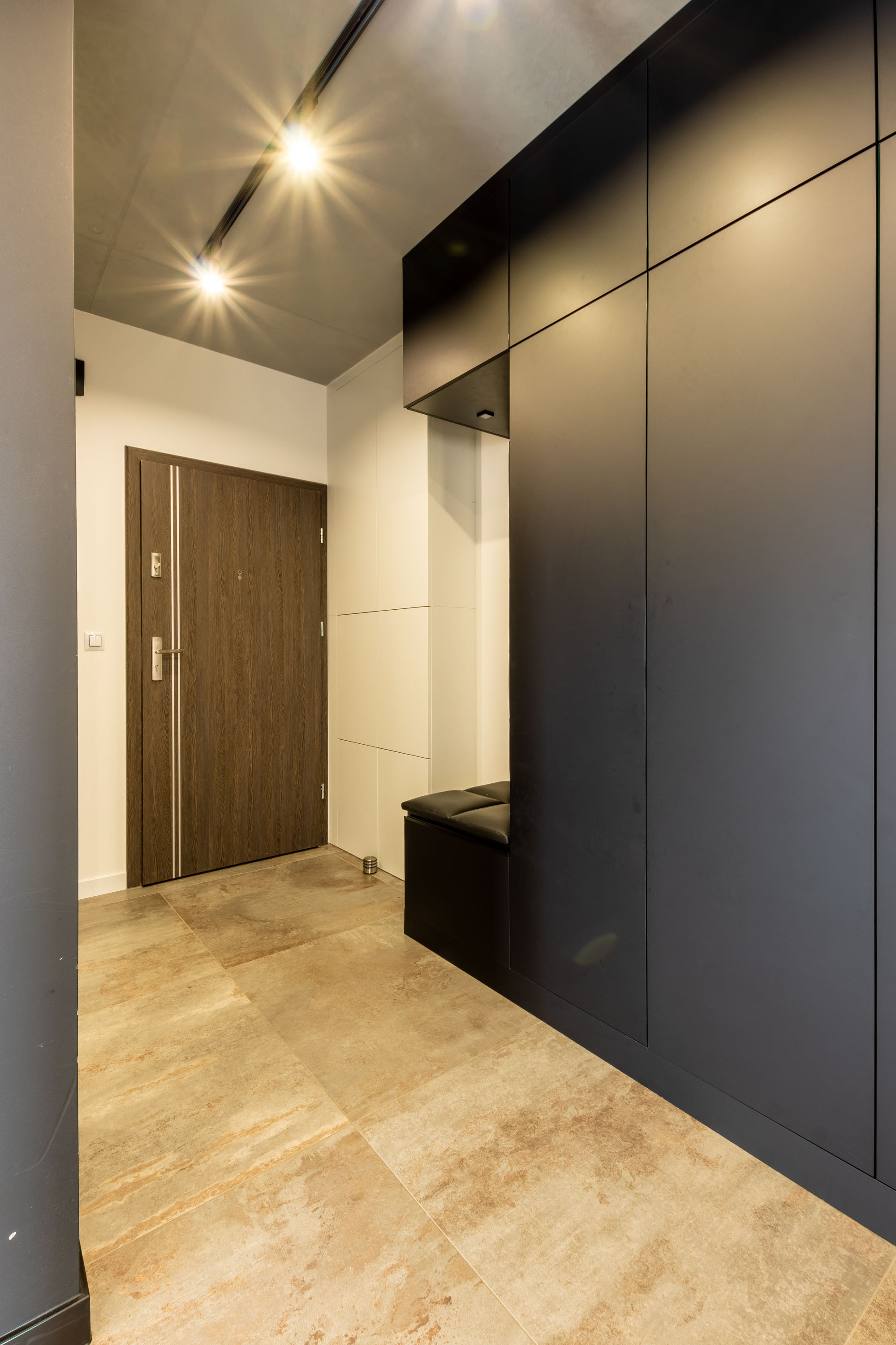 • przedpokój z pojemną szafą w zabudowie.