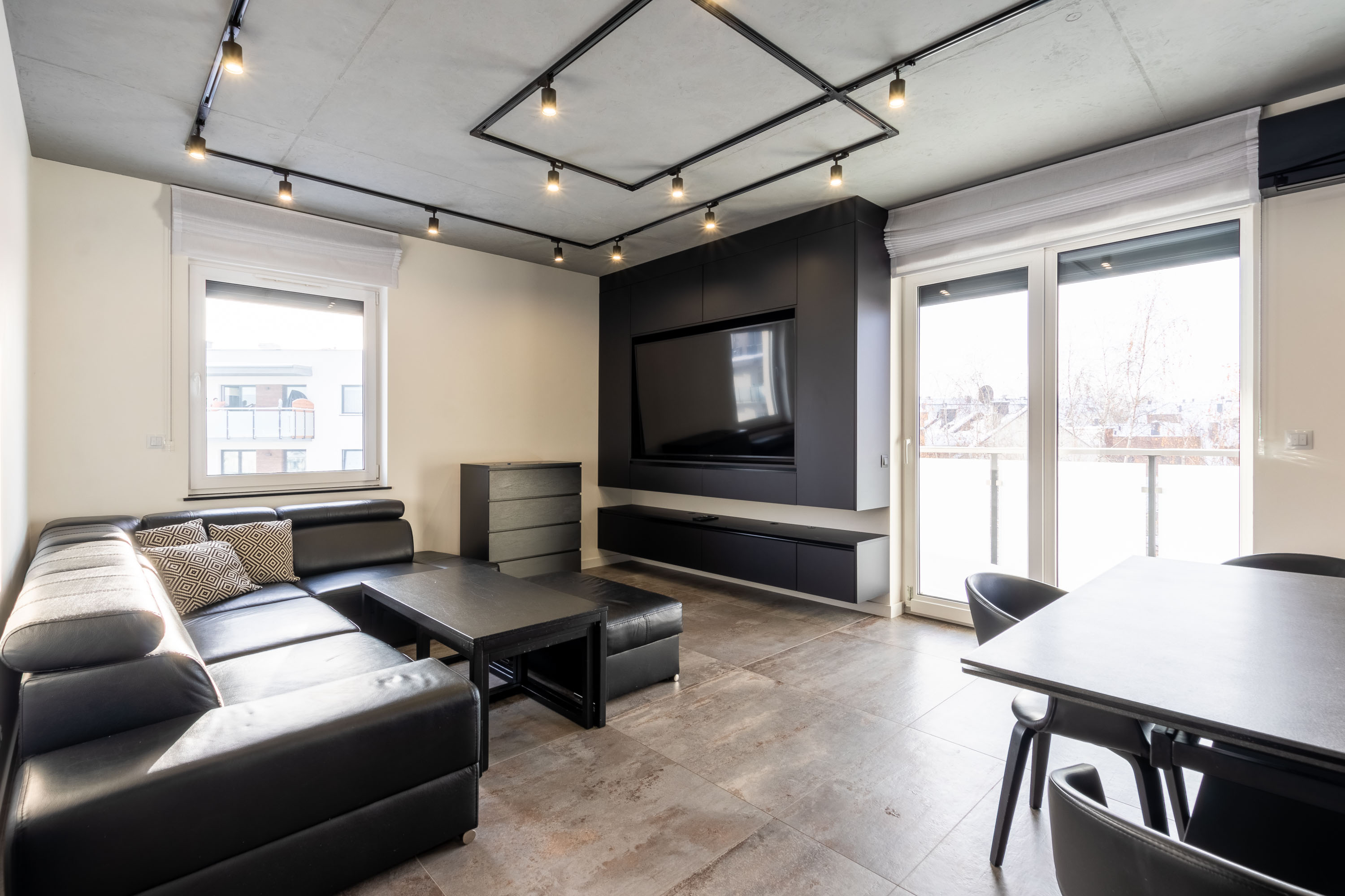 • przestronny salon z aneksem kuchennym i jadalnią oraz wyjściem na duży balkon,