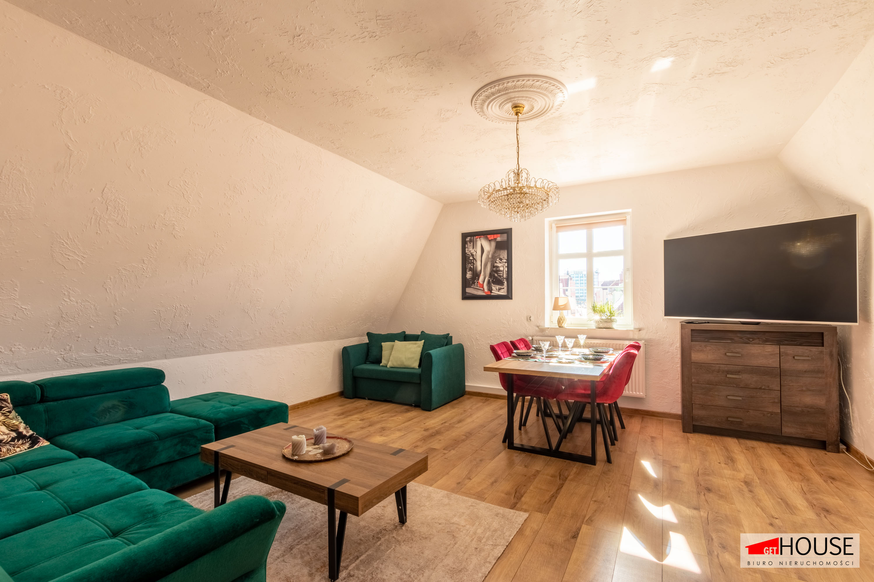 Biuro Nieruchomości GET – HOUSE prezentuje mieszkanie na wynajem usytuowane na trzecim piętrze czterokondygnacyjnej kamienicy w samym sercu Bolesławca.