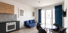 Mieszkanie jest nowoczesne, wykończone w wysokim standardzie i gotowe do zamieszkania od zaraz, w pełni umeblowane i wyposażone w sprzęt AGD (lodówko-zamrażarka, płyta indukcyjna, piekarnik, mikrofala, okap, zmywarka, pralka).